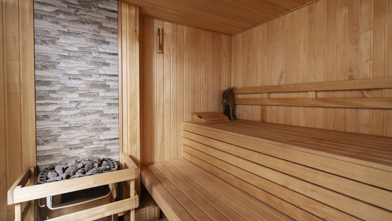 Step into our modern wooden sauna for a deep, restorative sweat.